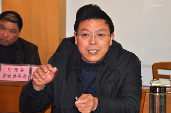市畜牧兽医局局长董瑞明向盖卫星一行汇报全市畜牧兽医工作